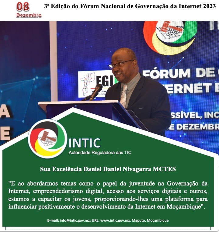O Ministro, durante a cerimónia disse que o fórum representava um marco crucial para a juventude moçambicana na medida em que é uma plataforma estratégica destinada a incentivar o envolvimento activo e significativo dos jovens nas discussões sobre o futuro digital sustentável do país. “E ao abordarmos temas como o papel da juventude na Governança da Internet, empreendedorismo digital, acesso aos serviços digitais e outros, estamos a capacitar os jovens, proporcionando-lhes uma plataforma para influenciar positivamente o desenvolvimento da Internet em Moçambique”. Acrescentou Nivagara.